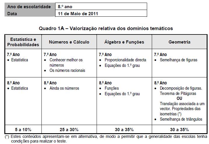 No que diz respeito ao teste do 8.º ano, a sua estrutura permitirá que a generalidade das escolas que estão a implementar o Novo Programa de Matemática do Ensino Básico tenha condições para o realizar.